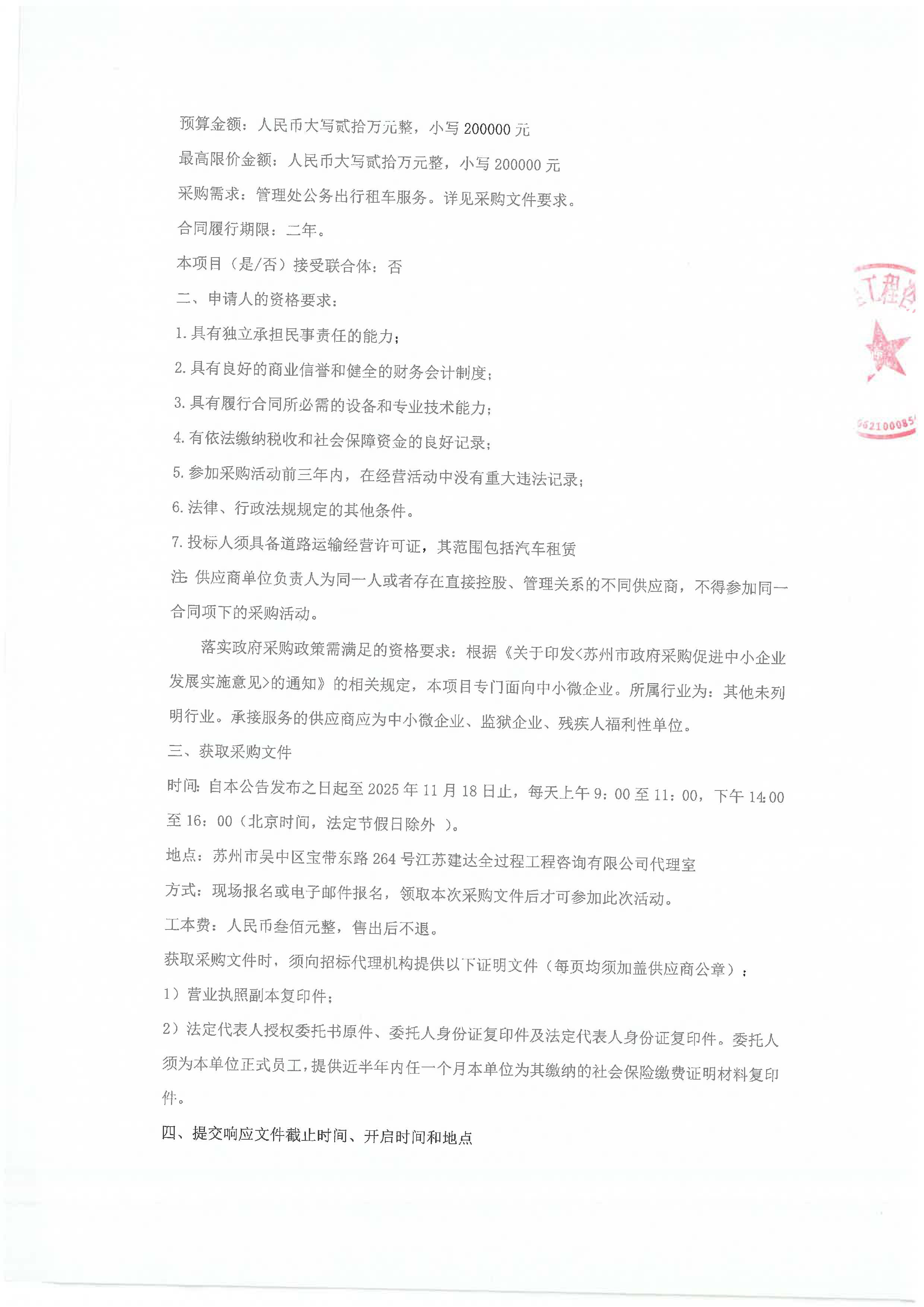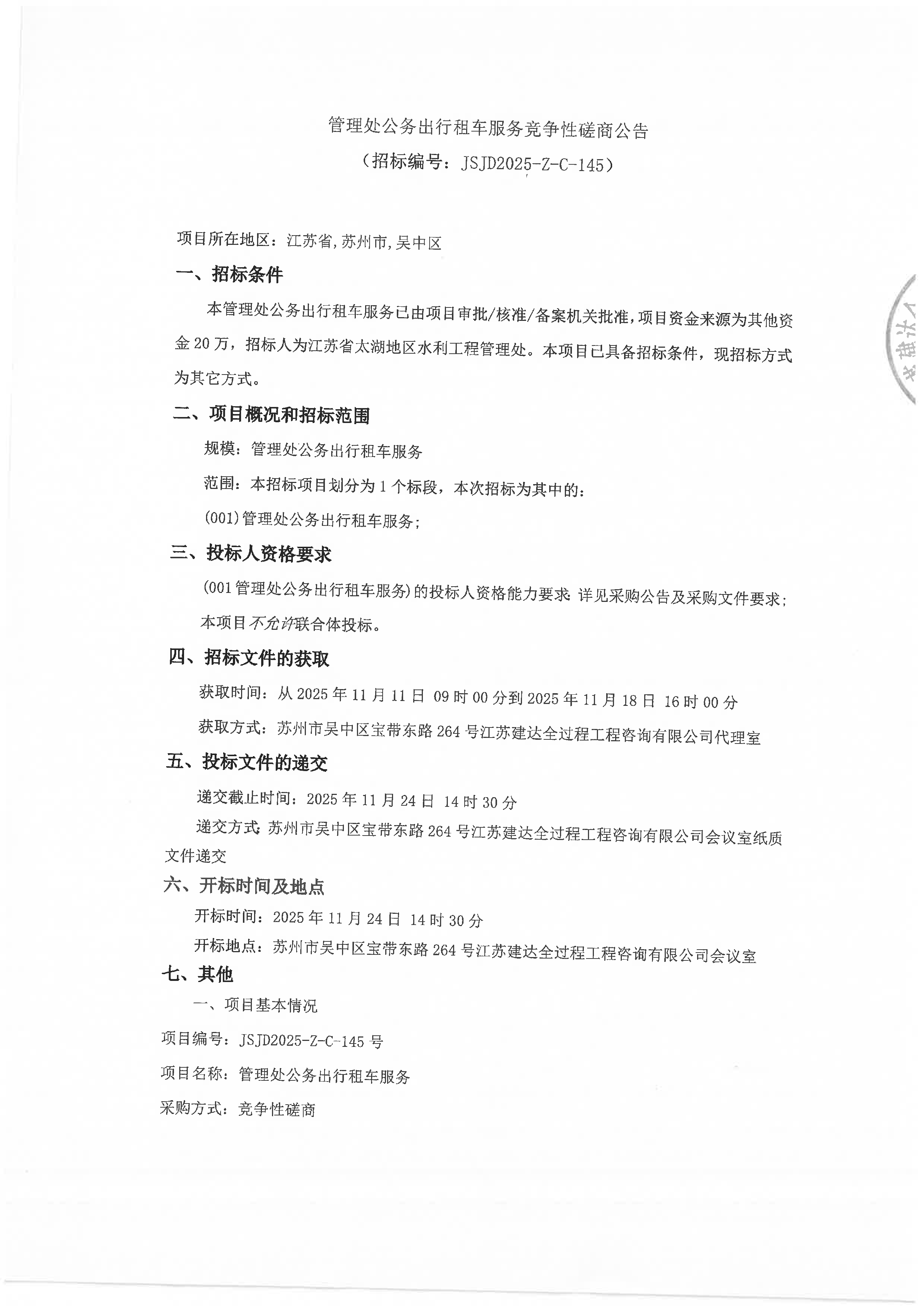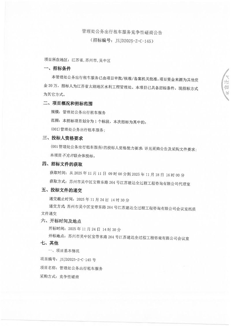 管理处公务出行租车服务项目竞争性磋商公告