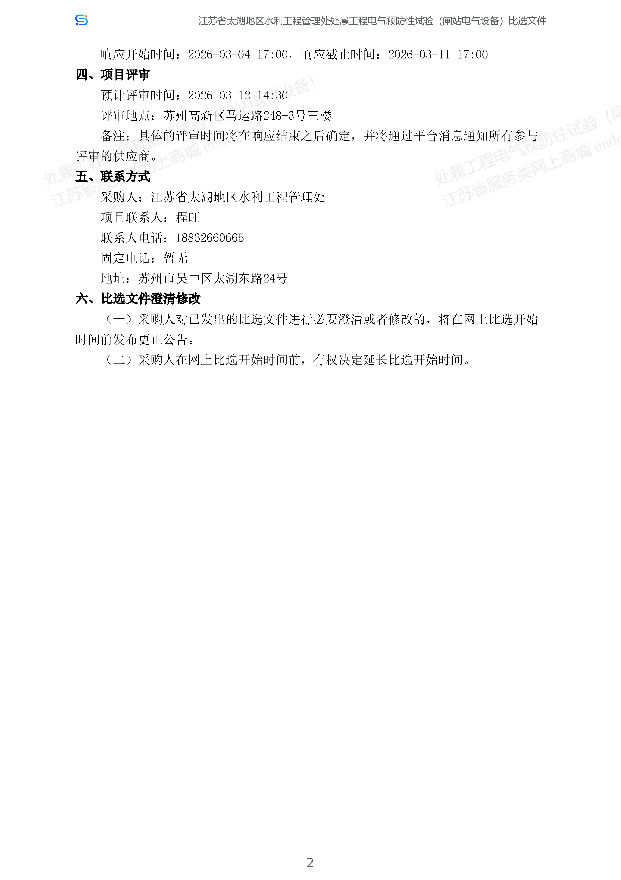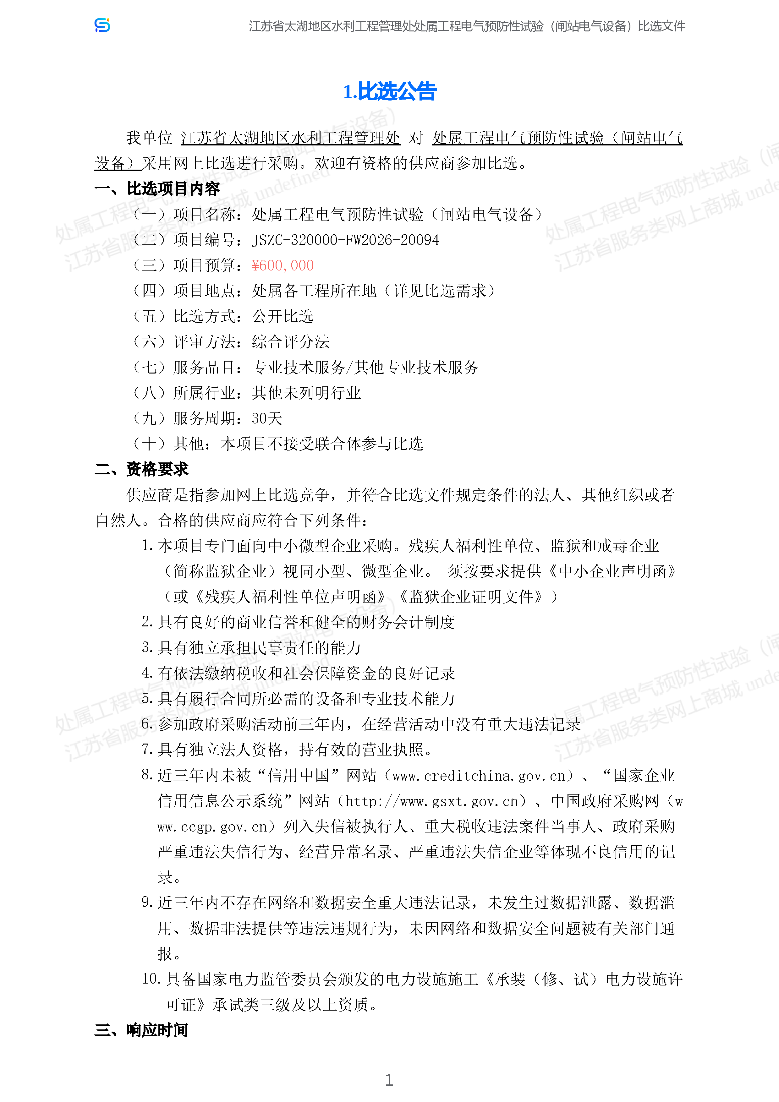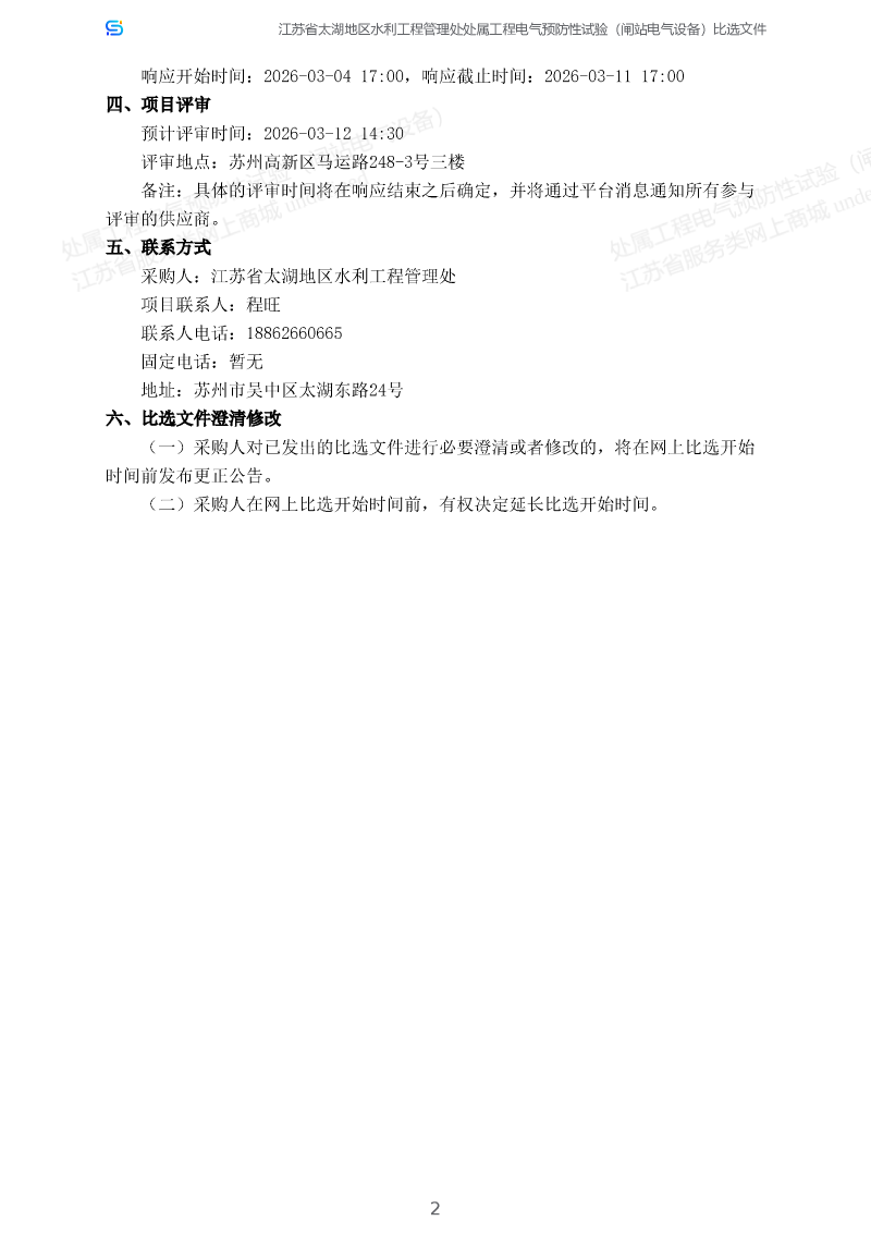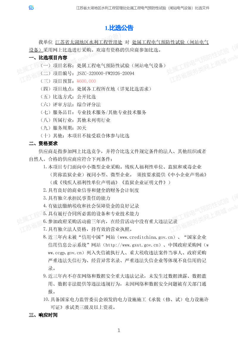 处属工程电气预防性试验(闸站电气设备)项目采购公告