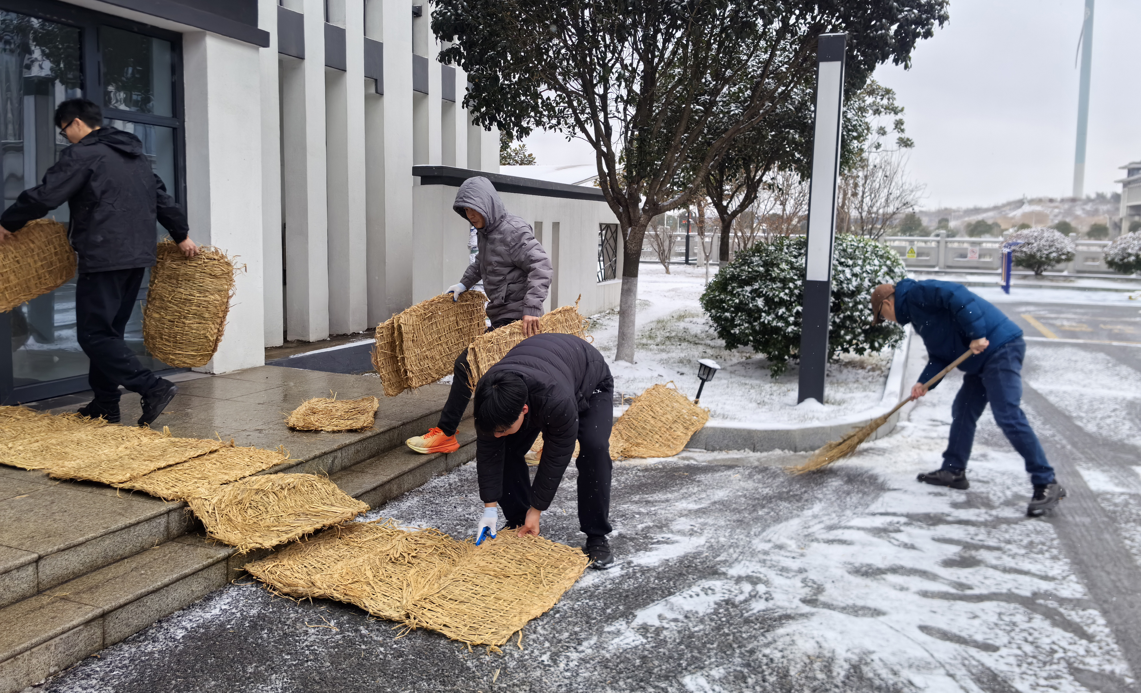 同时,管理所同步做好配套保障工作,在重点路段、台阶处铺设防滑草垫,从源头降低滑倒风险;提前熬制姜汤,为一线除雪人员驱寒暖胃,全力保障除雪作业高效推进。经有序作业,江阴管理所主要通道、关键部位积雪已清理完毕,有效维护工程管理区域的生产生活秩序,降低了安全作业风险。
