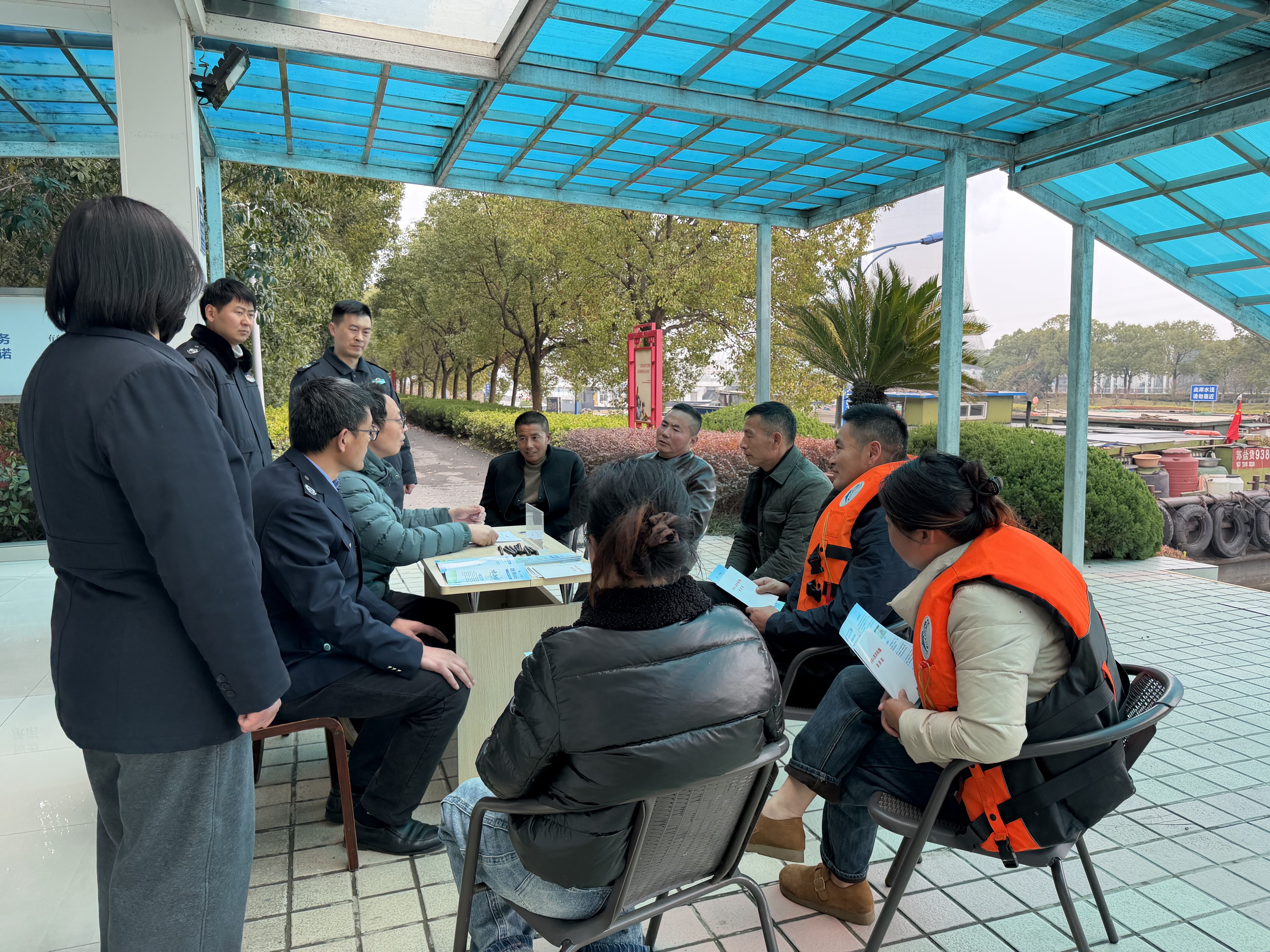 当天中午,停靠在蠡河控制工程待闸区的船民们陆续上岸,望亭枢纽管理所所长张沛霖带领工作人员热情接待,耐心倾听大家的诉求。“船闸费有没有优惠政策?”“我们长期在船上生活,垃圾不好处理,能不能在这里设置专门的回收点?”面对船民们提出的一个个实际问题,工作人员逐一细致解答、认真记录,用专业与耐心回应每一份期盼。