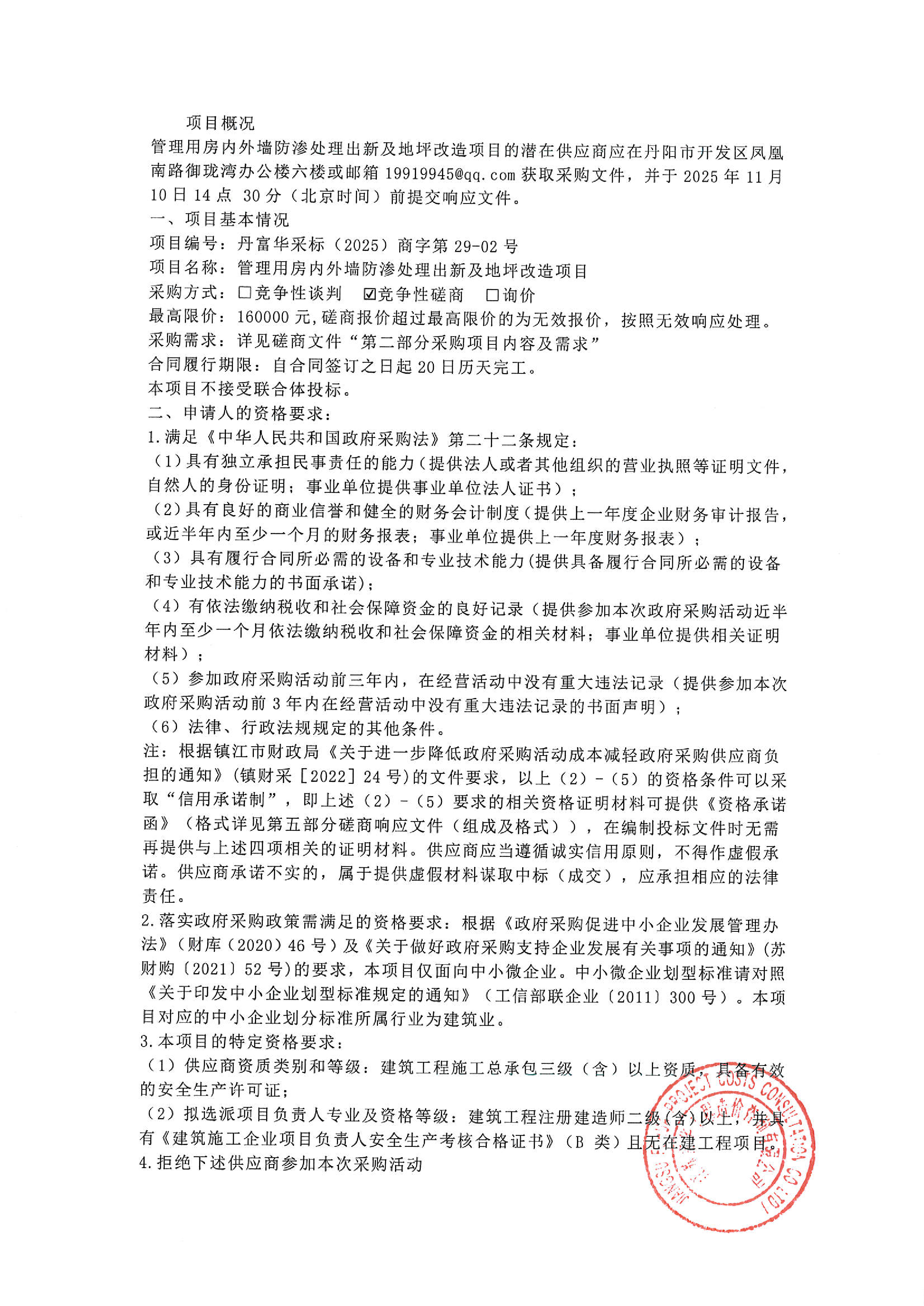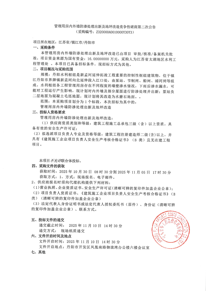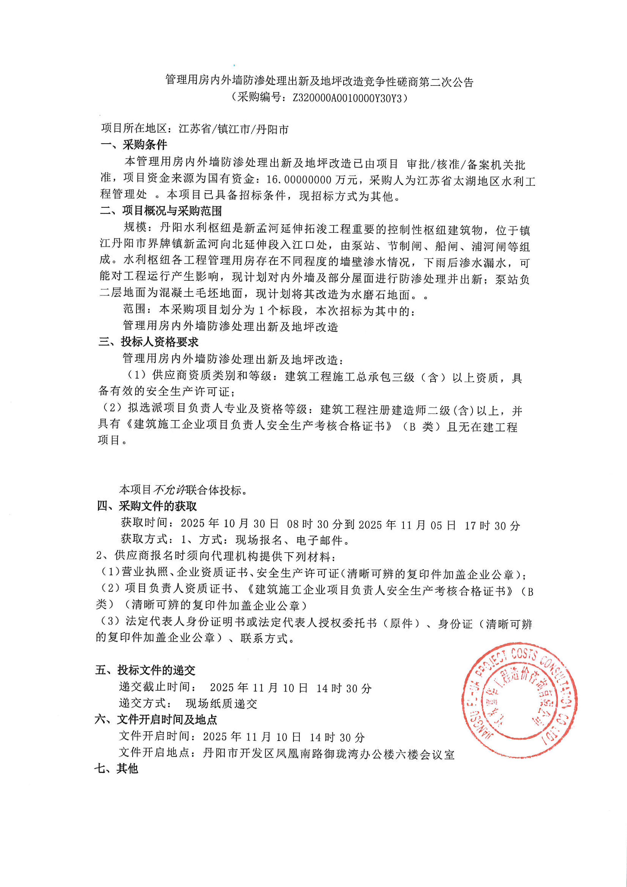 管理用房内外墙防渗处理出新及地坪改造竞争性磋商第二次公告