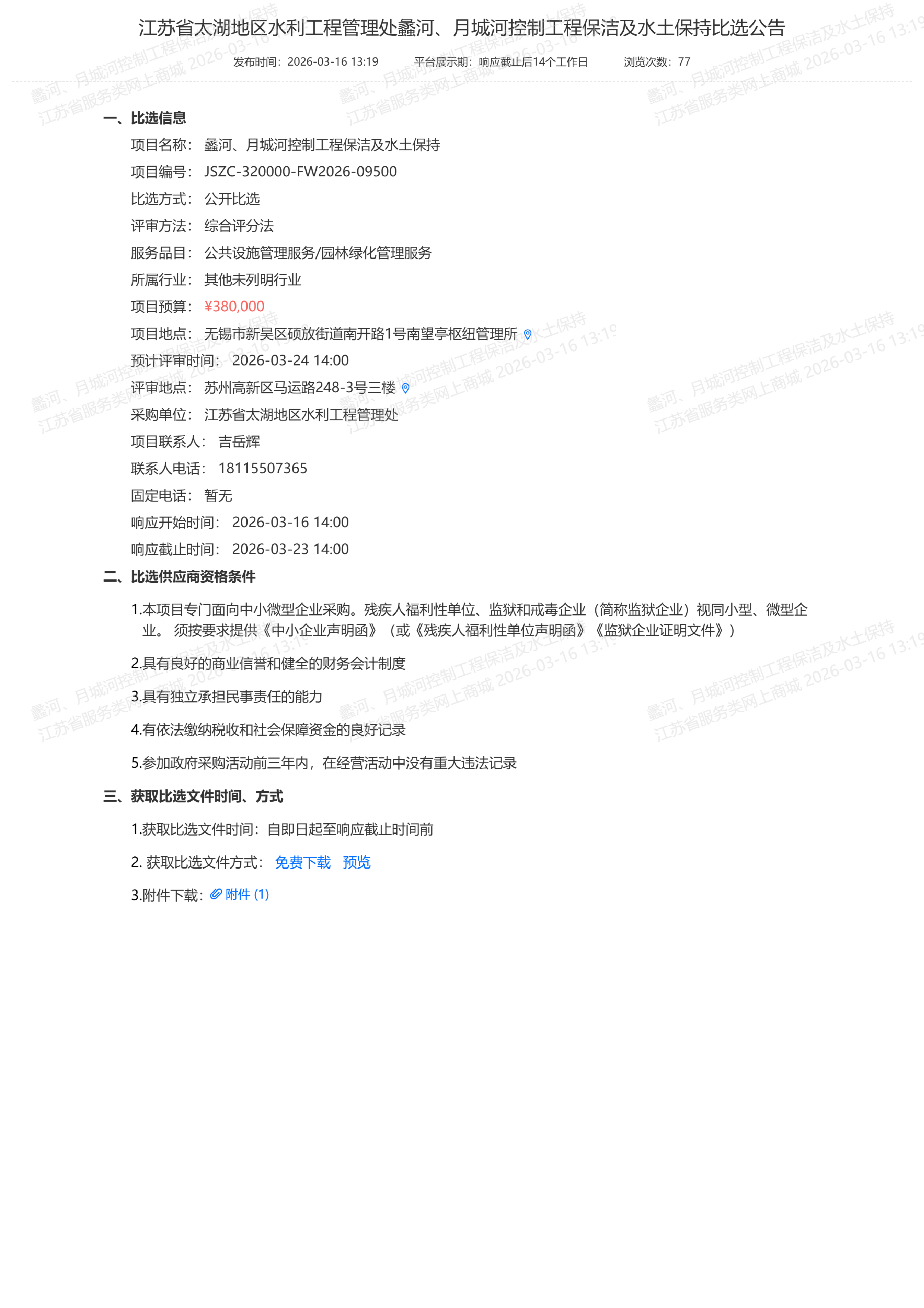 蠡河、月城河控制工程保洁及水土保持项目招标公告